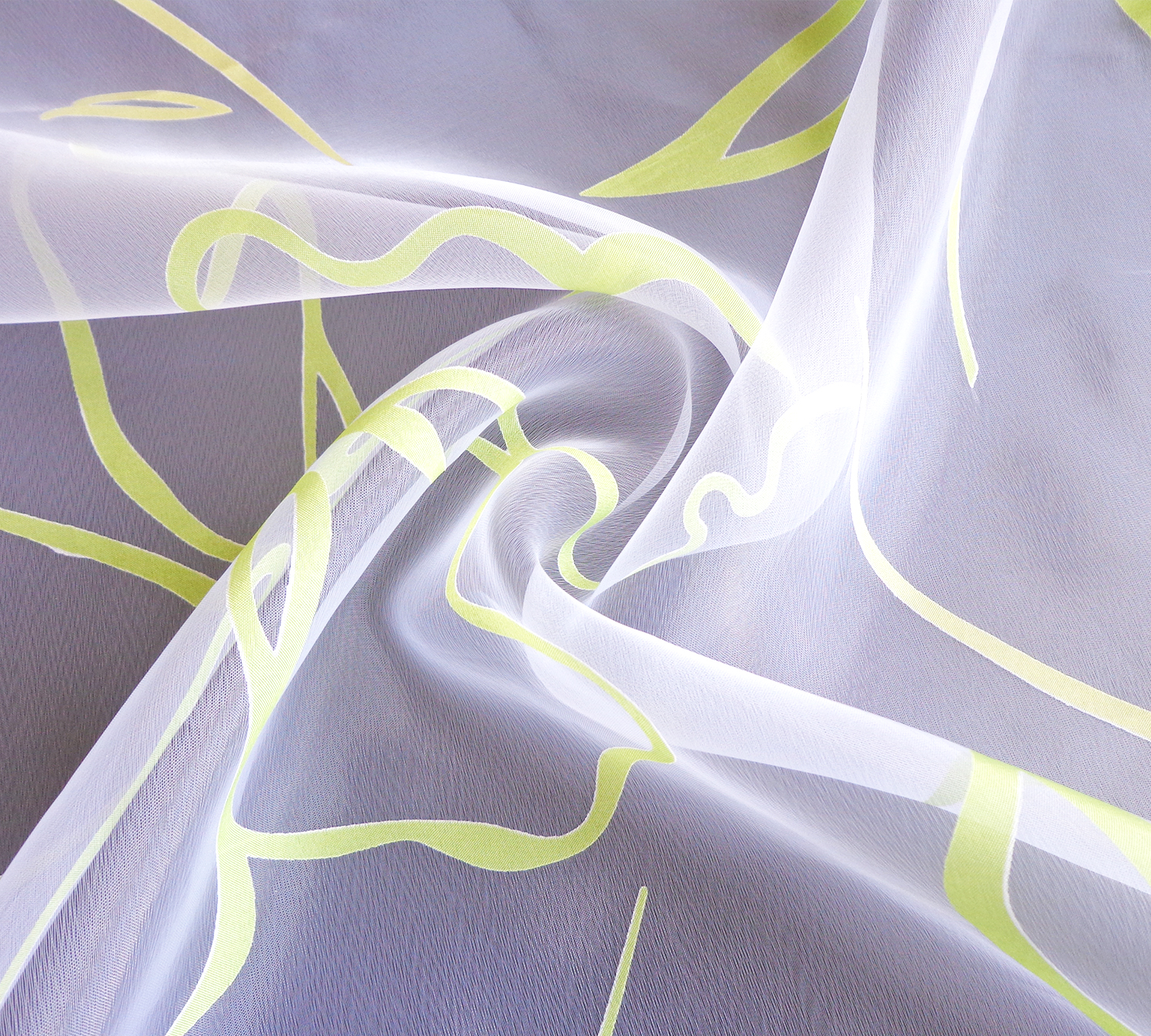 Структура ткани: Структура  тюли – легкая вуаль зелено-желтого  цвета с печатным рисунком.