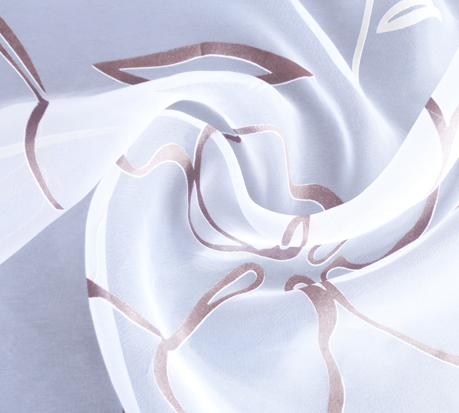 Структура ткани: Структура  тюли – легкая вуаль бело-коричневого  цвета с печатным рисунком.